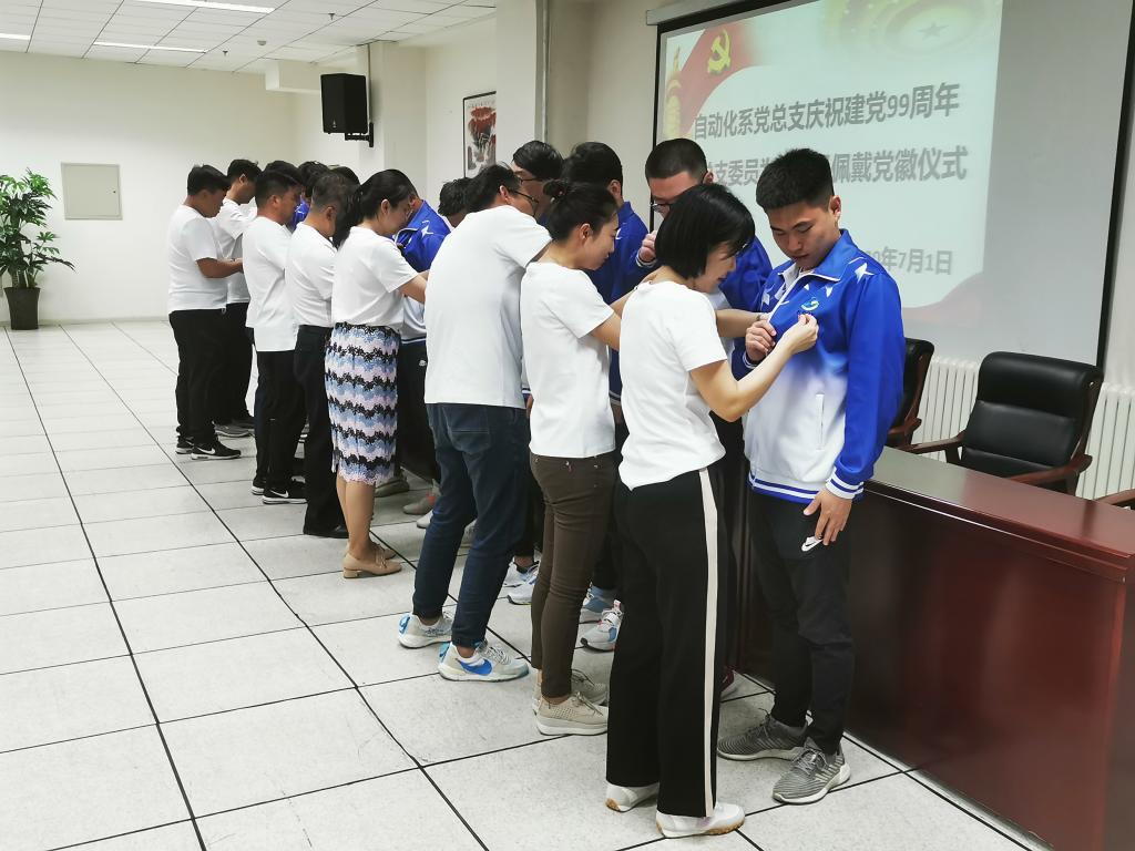 接下来,自动化系党总支全体委员为新接收的11名预备党员佩戴党徽,并由党总支书记张云龙领誓,新党员举起右拳,庄严地进行入党宣誓;全体老党员重温了入党誓词,接受了心灵的净化和洗礼,大家用饱满的热情、昂扬的斗志抒发着作为共产党员的自豪感和使命感,抒发着对党忠诚的意志和信念。党员同志们深受教育,纷纷表示,要牢记党的宗旨,增强党性修养,坚定理想信念,以践行“为党育人,为国育才”的神圣使命,强化党章党规的学习,发挥好党员先锋模范作用,继续在各方面作出表率,践行自己的入党誓词,为学院的发展、社会的进步、国家的富强贡献自己的力量。