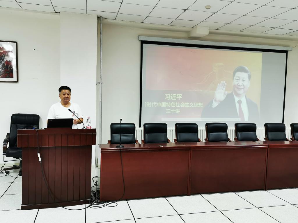 会上,党总支书记张云龙作了《习近平新时代中国特色社会主义思想三十讲》中的第一讲《习近平新时代中国特色社会主义思想是党和国家必须长期坚持的指导思想》的专题党课。他强调,今天是7月1日,我们迎来中国共产党成立99周年。从1921年到2020年,99年波澜壮阔的历史进程中,回顾我们党近百年历史和70多年执政历程,中国共产党用实际行动和丰硕成果,给出了“为了谁、依靠谁、我是谁”这个事关政党立场和奋斗目标的根本问题的最好答案。我们要深入学习贯彻习近平新时代中国特色社会主义思想,以实现第一个百年奋斗目标的胜利为新的起点,牢记初心使命,保持积极进取的精神状态和一往无前的奋进姿态,为实现中华民族伟大复兴的中国梦而努力奋斗。