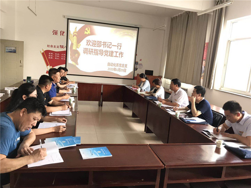 2020年6月29日下午15:30,包头轻工职业技术学院党委书记邵文祥深入自动化系,调研自动化系党总支党建工作、党政领导班子运行、会议制度落实情况及“双带头人”教师党支部书记工作室及最强党支部创建等工作,党委委员、志愿服务指导中心主任陈芳,党委委员、组织人事处处长吕林旺陪同调研,组织人事处副处长连波、组织科科长张怡、团委文体素质拓展部副部长宋情、宣传统战部新闻宣传科马心钰及自动化系党总支委员、党支部委员参加调研。