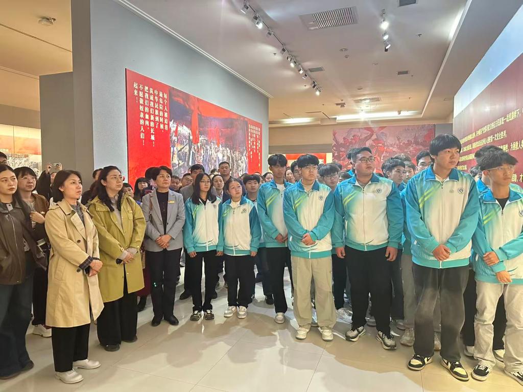 在博物馆讲解员的引导下,师生们沿着四个单元的展览脉络有序参观,从日本侵华的侵略行径,到中国共产党带领包头人民奋起反抗,再到全体爱国军民携手御敌,最后见证抗战胜利与包头光复,每一段历史都通过实物、影像与文字的结合,变得鲜活而厚重。大家不时驻足凝视展品、交流感悟,被当年军民奋勇抗敌的精神深深震撼。