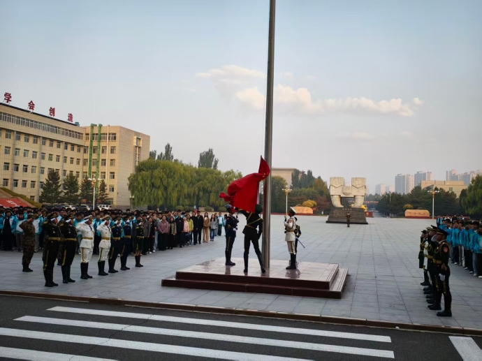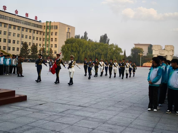 随着激昂的《义勇军进行曲》奏响,护旗手迈着铿锵有力的步伐护送国旗入场,全体师生肃立行注目礼,鲜艳的五星红旗在朝阳中冉冉升起,广场上回荡着整齐嘹亮的歌声,庄严的氛围让每一位在场者的爱国之情油然而生。
