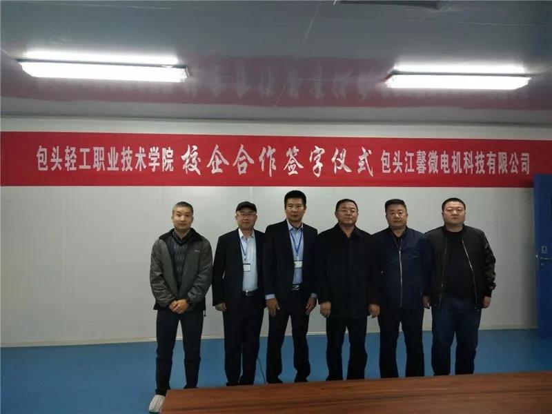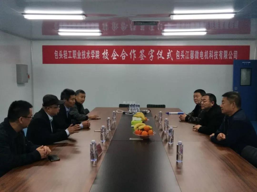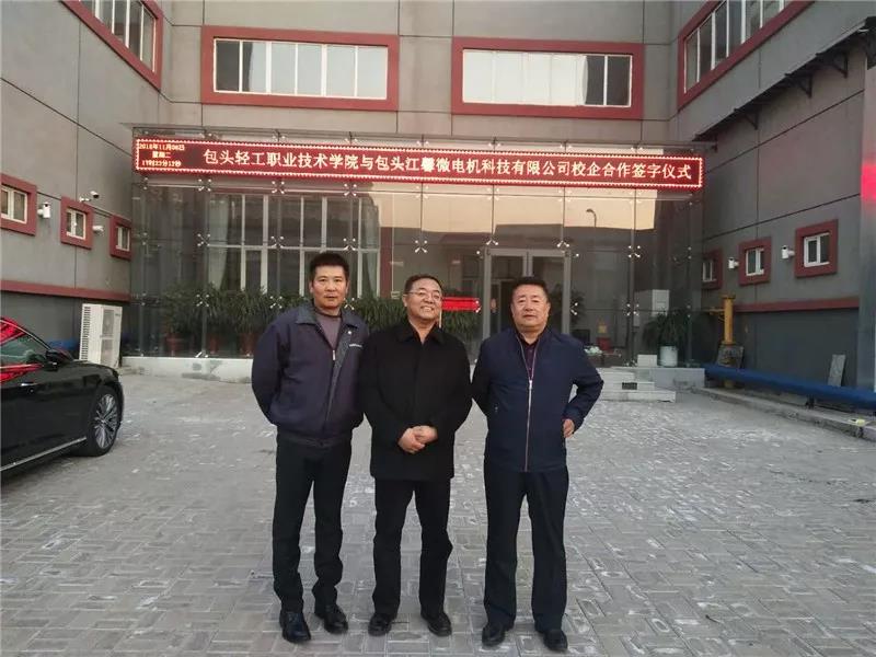 2018年11月6日,包头轻工职业技术学院院长任雁秋,自动化学院院长张云龙、党总支副书记赵继龙一行到包头江馨微电机科技有限公司、包头恒宇磁源科技有限公司参观考察,包头江馨微电机科技有限公司董事长郭延春陪同参观。