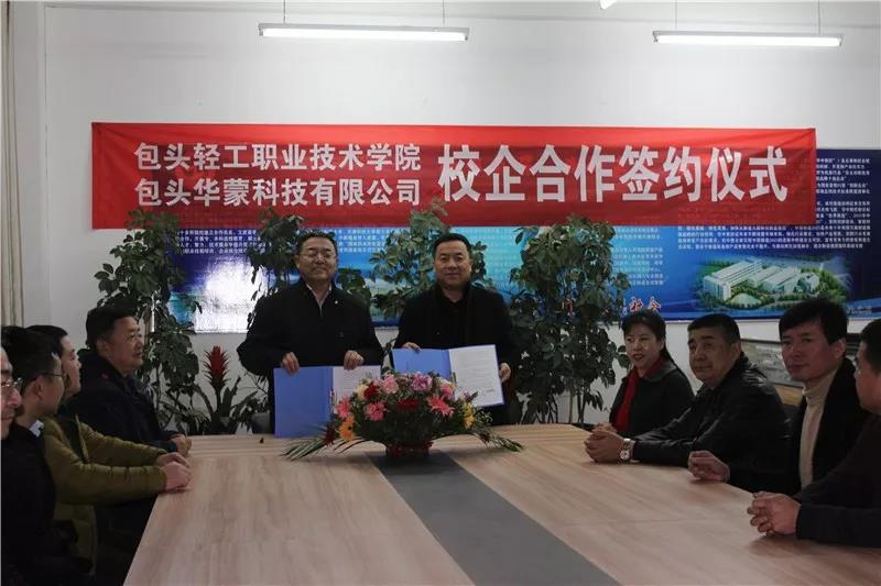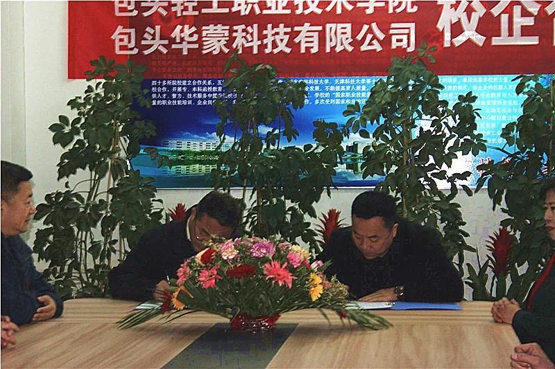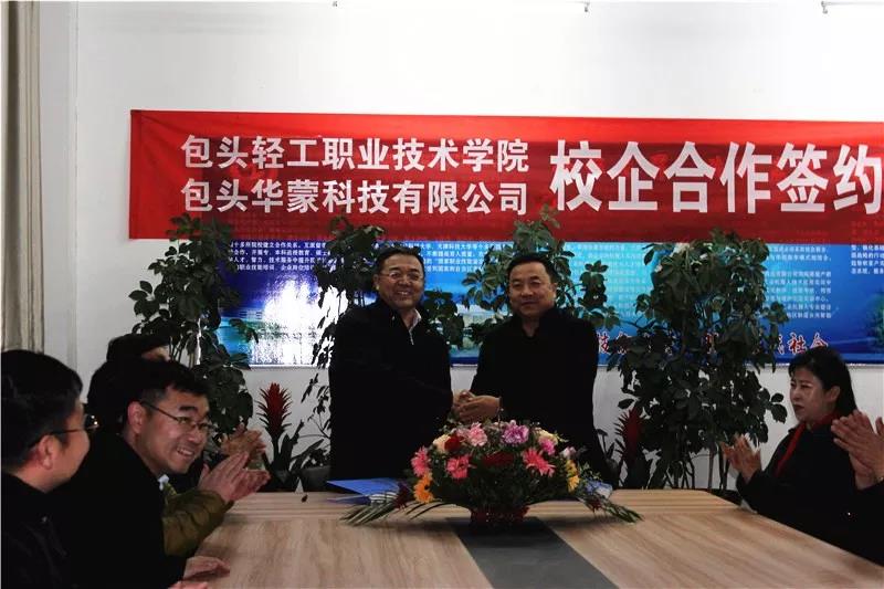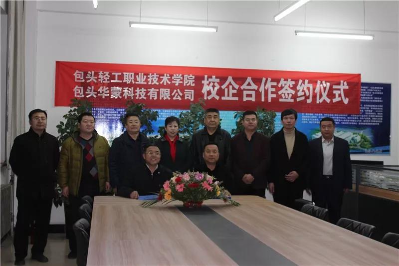 2018年12月26日,包头轻工职业技术学院与包头华蒙科技有限公司校企合作签订仪式在创造楼328举行。包头轻工职业技术学院院长任雁秋与包头华蒙科技有限公司董事长刘焕保共同签署了校企合作协议书。