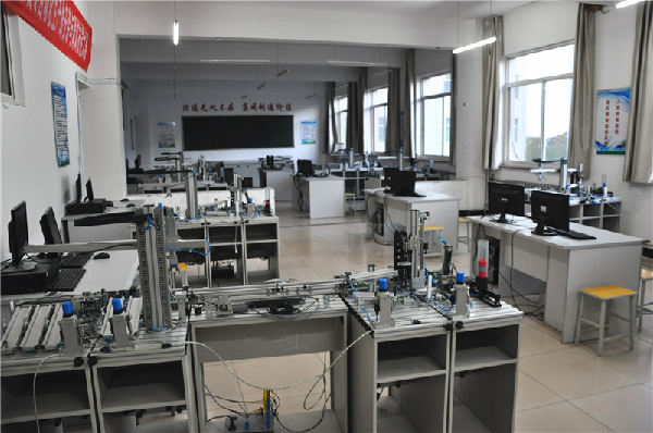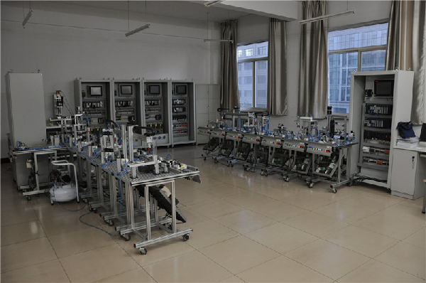 自动化学院校内实训基地共21个功能实训室,包括学院2009年建设而成的“德国FESTO机电一体化技术培训中心”7个实训室,分别为气动、电气液压、开关量传感器、模拟量传感器、模块化生产加工系统MPS、柔性物流制造系统FMS、过程控制PCS实训室;以及2013年建成的GE智能平台自动化系统集成实训室2个、供配电实训室1个;其他基础实训室包括2个可编程控制技术基础实训室,4个维修电工实训室,1个基础电工实训室,3个电工电子电拖实训室,和1个LED实训室。