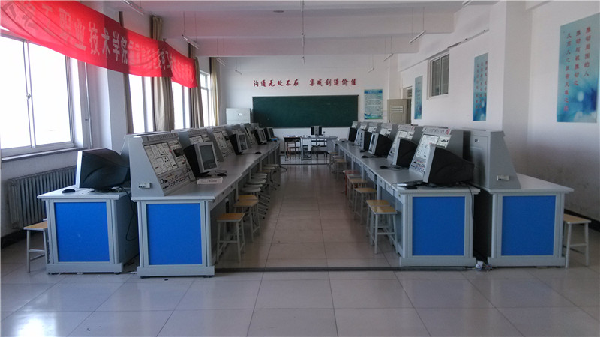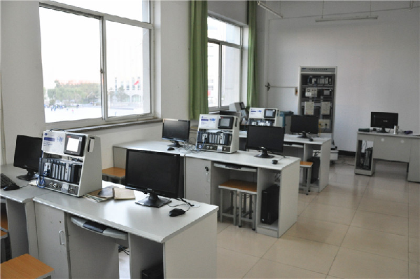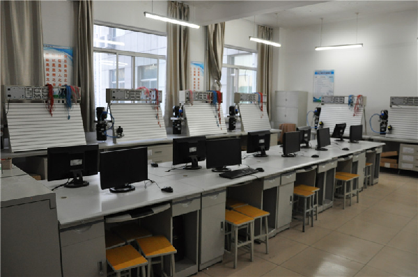 可编程控制器实训室(二),成立于2011年5月,占地面积63平方米。实训室配有可编程控制器操作台20个,采用当前工厂主流应用的西门子S7-200系统,电脑21台、主机实训组件、常用实训工具、多媒体教学设备等,现有仪器设备价值近30万元。使学生能够在编程的同时在计算机屏幕上全真模拟PLC的控制对象,以非常直观的方式实时调试结果。根据高等职业技术教育的相关要求,针对市场及企业岗位需求,开设相关的实验、实训项目:基本指令和编程练习、十字路口交通灯控制、多种液体自动混合控制、抢答器控制、电梯自动控制系统、音乐喷泉的PLC控制、自动售货机控制、自控成形机控制、装配流水线控制的模拟、机械手动作的模拟、自动洗衣机控制系统、三相鼠笼式异步电动机控制等实训项目。