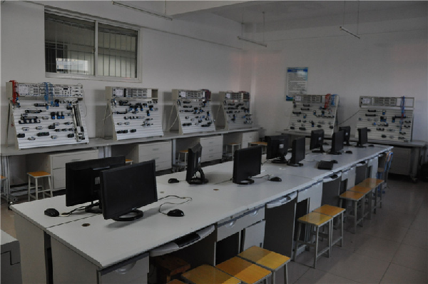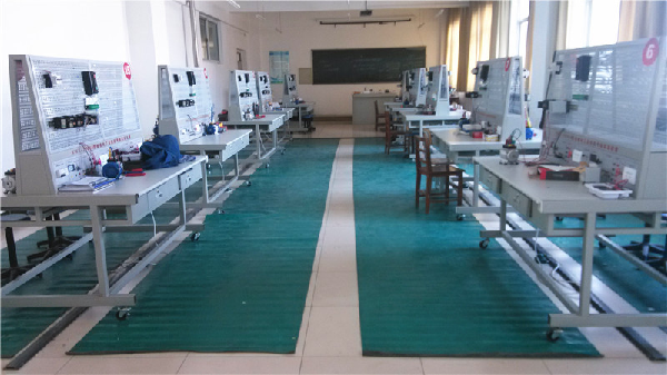 维修电工实训室设有3个。维修电工实训室(一)占地面积120平方米,实训室(二)占地60平方米,分别配有低压电气配电盘20套。实训室(三)占地面积120平方米,配置浙江天煌教仪THWD-1D型维修电工技能实训装置10套。每个实训室可同时满足40名学生进行教学。