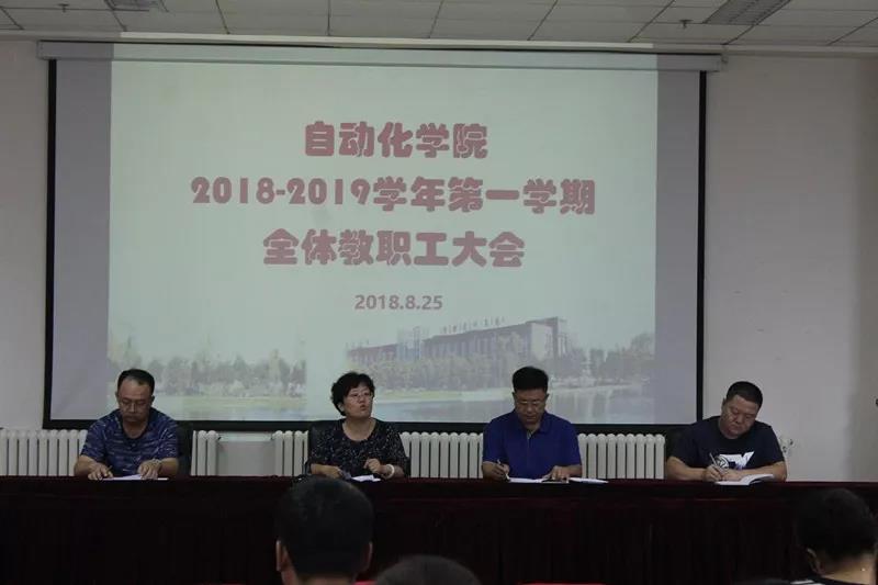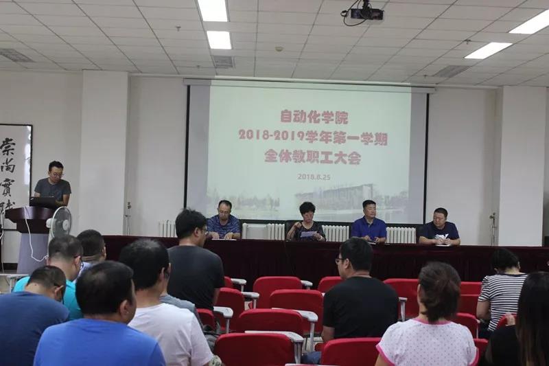 2018年8月25日下午,自动化学院在图书馆509会议室召开2018—2019学年第一学期全体教职工大会。会议由自动化学院综合办公室主任董正海主持,院长张云龙、党总支书记、副院长王瑞清、党总支副书记赵继龙、副院长张智慧以及自动化学院全体教职工参加了本次会议。