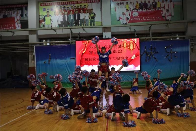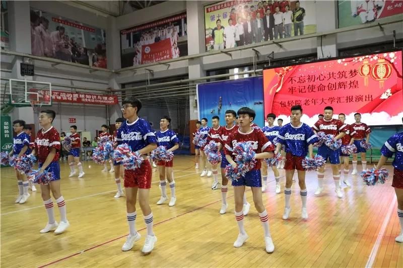 2018年6月15日下午,为了丰富校园文化生活,进一步推动学院文化建设,不断提高同学们的综合素质,营造和谐向上的校园文化氛围,为同学们提供一个展现自我的舞台。包轻院自动化学院啦啦操队在体育馆参加主题为“不忘初心共筑梦,牢记使命创辉煌”包轻院老年大学汇报演出。