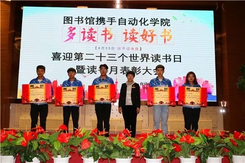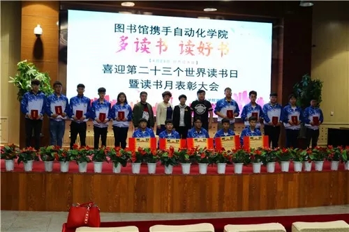 大家首先观看了有关世界读书日和包轻院图书馆辉煌成就的视频;接着郭丽华馆长宣读了自动化学院书香班级获奖名单并颁发奖状,孙俪主任宣读读书月之星获奖名单并颁发奖状,并集体合影留念。最后石永涛科长为本次大会做了总结,呼吁同学们多读书,读好书。