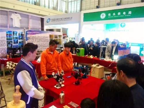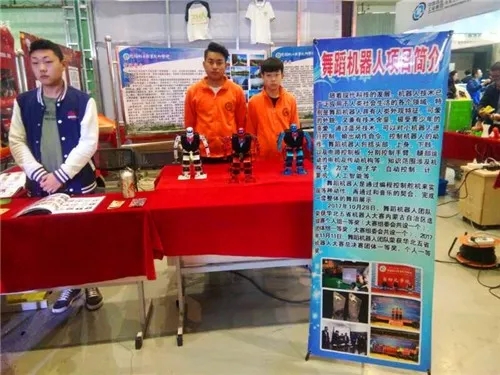 包头轻工职业技术学院主题展区展示的内容是自动化学院“i+科技创新社团”的舞蹈机器人、3D打印技术、人工智能机器人三个项目,共有50名学生参加展会。