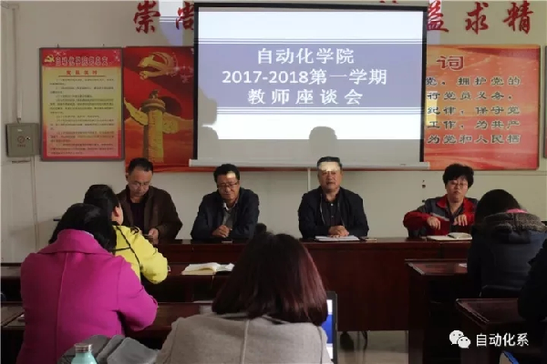2017年11月6日,自动化学院在创造楼303召开2017—2018学年第一学期教师座谈会。会议由自动化学院教学管理中心主任赵玮主持,院长张云龙,党总支书记、副院长王瑞清,副院长石磊,党总支副书记赵继龙,副院长张智慧及全体任课教师出席。