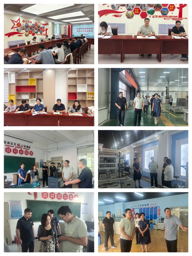 座谈会结束后,高院长一行实地参观了自动化系实训室、机器人中心、技能大师工作室,详细询问了实训设备的使用、运行等情况,并与现场教师交流实训教学安排,为基地后续建设与实训教学优化提出指导性建议。
