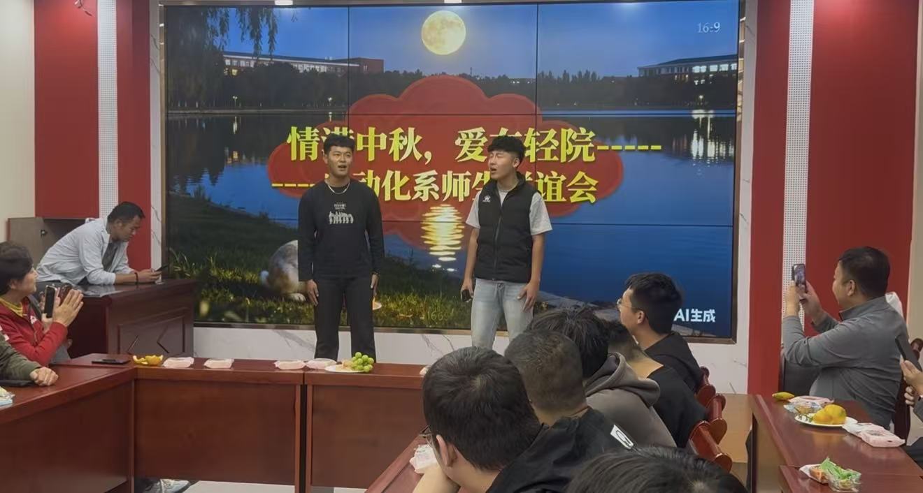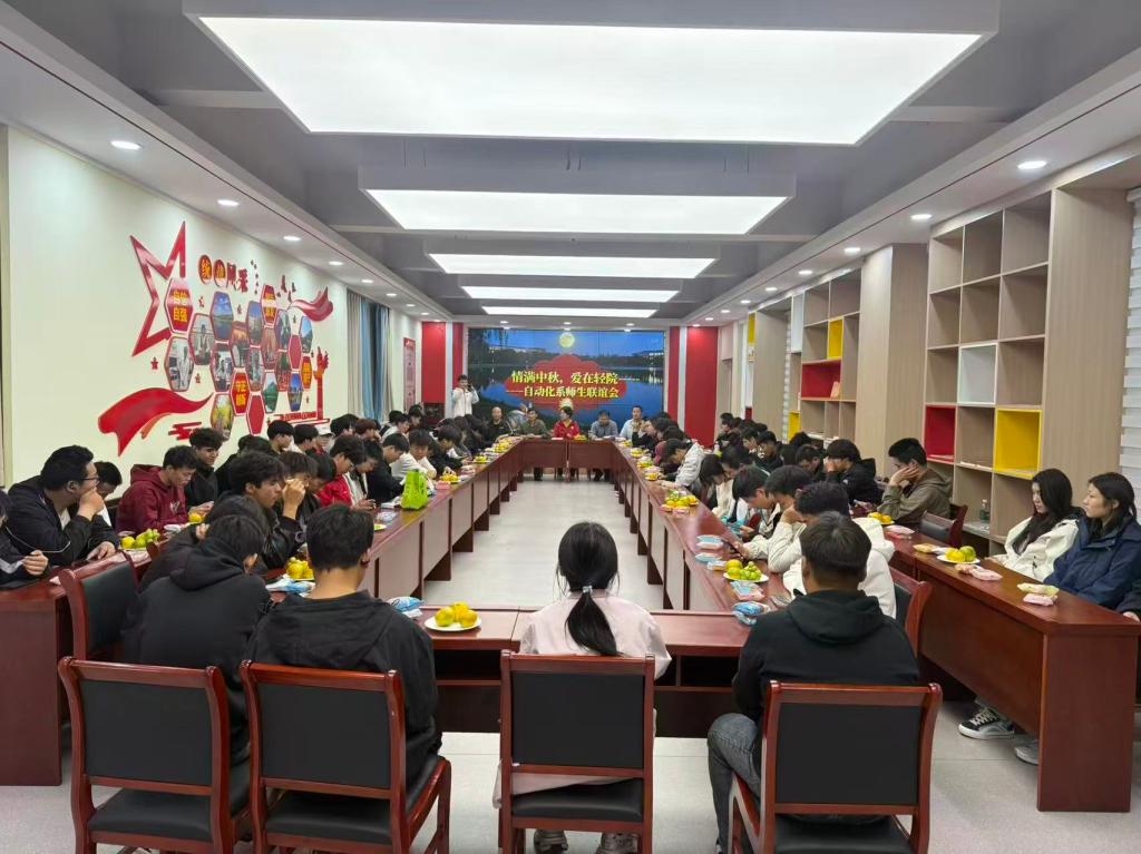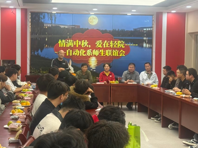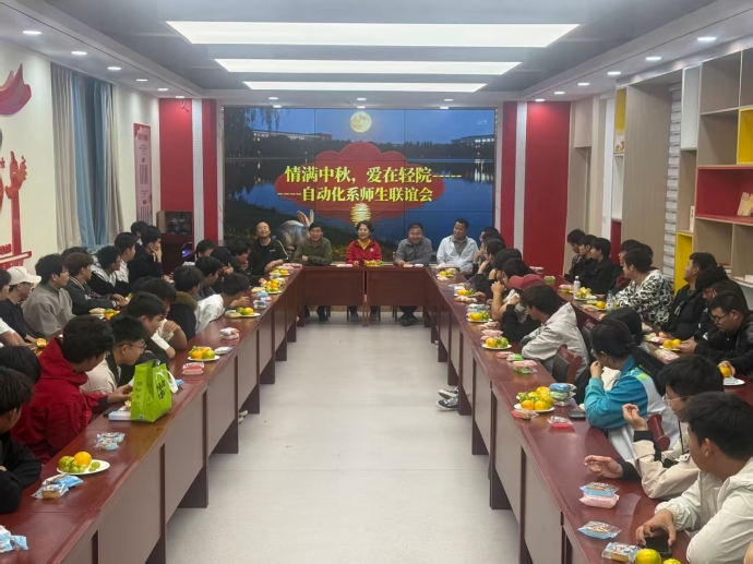 金秋送爽,月满情长。2025年10月6日晚,自动化系“情满中秋,爱在轻院”师生联谊会在创造楼127会议室温馨举行。系领导班子成员、辅导员、班主任代表与未回家的90余名学子们欢聚一堂,共庆中秋佳节,传递系部关怀。