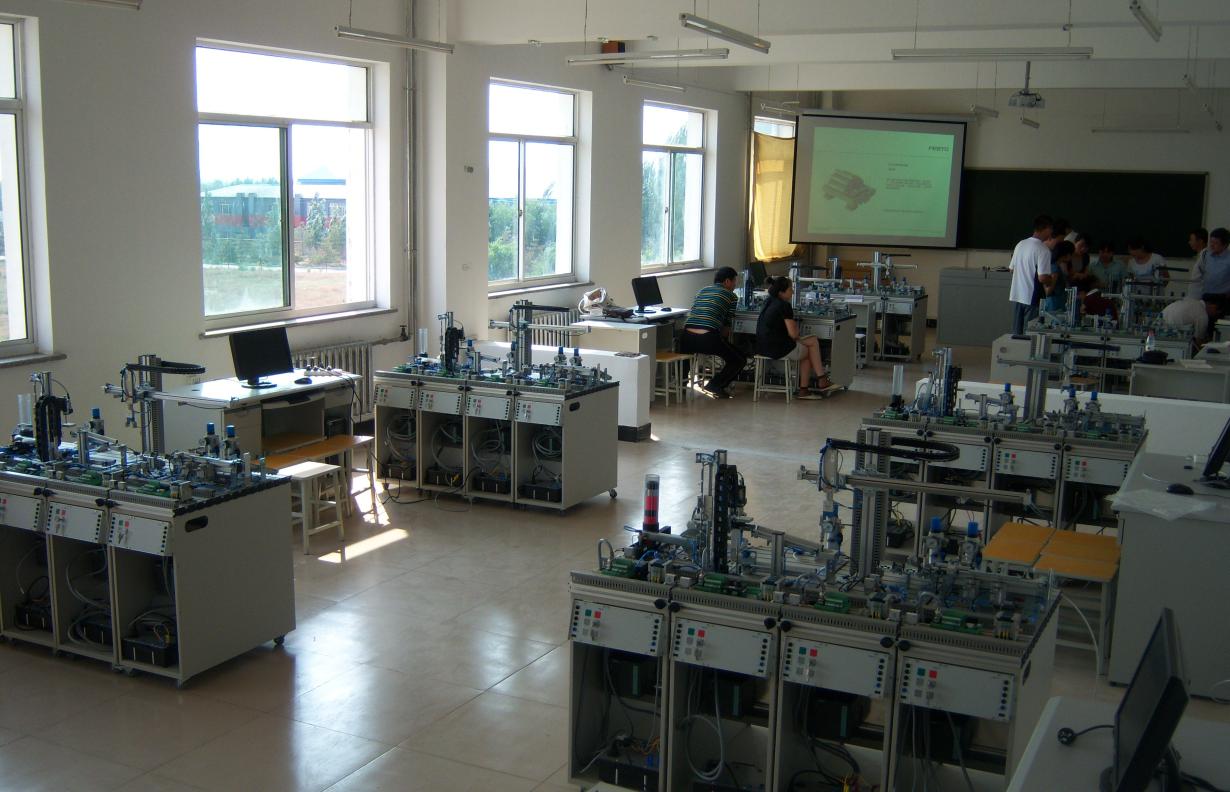 学院遵循“校企合作、工学结合”的理念,积极建设校内外实训基地,现有2个生产性实训基地、26个校内实训室,20多家校外实训基地。实践教学条件比较完备,建有德国FESTO设备的机电一体化实训中心,美国GE智能平台实训室,总投资1500余万元。拥有模块化生产加工系统(MPS)、电气液压与气压、传感器、柔性制造(FMS)、过程控制(PCS)等25个专业技能实训室。