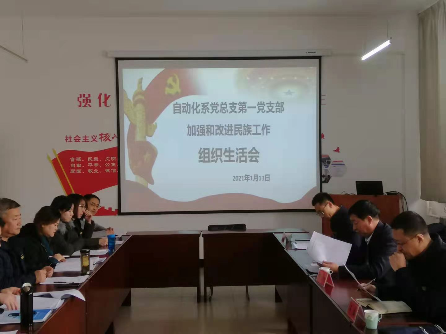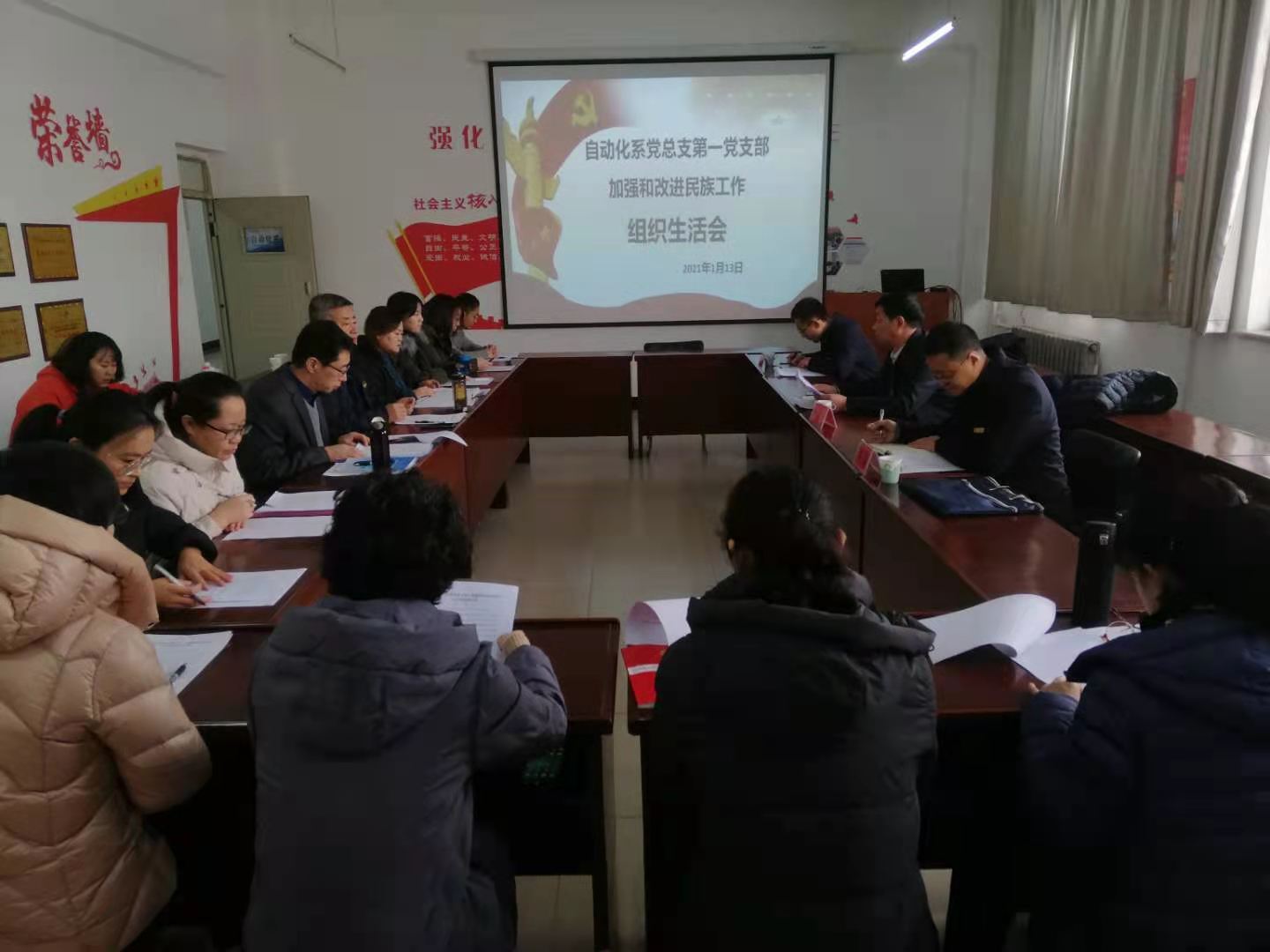 按照学院党委《中共包头轻工职业技术学院委员会关于召开加强和改进民族工作专题组织生活会和开展民主评议党员的通知》工作要求,2021年1月13日下午15:30,自动化系党总支第一党支部在创造楼306会议室召开了加强和改进民族工作专题组织生活会和民主评议党员大会,第一党支部书记王亚非主持会议,学院党委书记邵文祥全程列席指导,党政办公室主任石磊、党政办公室宋情同志陪同指导,自动化系党总支书记张云龙以普通党员身份参加会议,第一党支部全体党员参加会议。