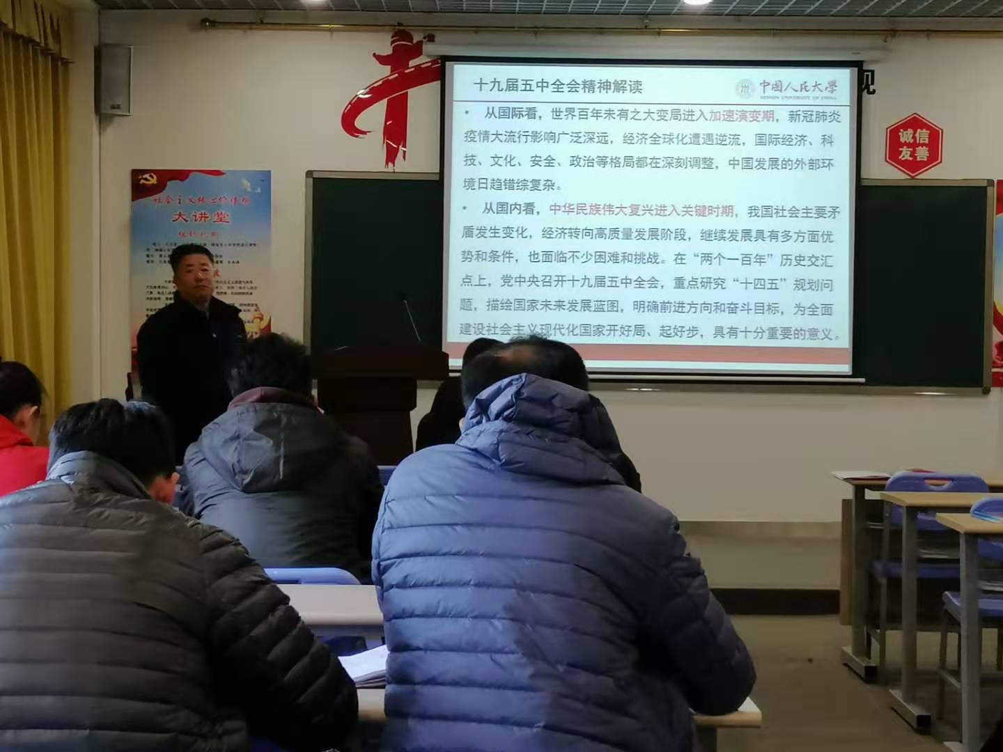 张云龙书记从全会召开背景;主要成果;《建议》、《公报》起草情况;突出特点、重要特点、突出亮点;逻辑主线;《建议》、《公报》内容要点;核心要义及必须坚持党的全面领导八个方面对党的十九届五中全会精神进行了全面宣讲和系统阐释,他强调,习近平总书记在十九届五中全会上的重要讲话,深入分析了我国面临的国际国内形势,系统阐述了今后一个时期发展的战略部署,提出了一系列新思想新论断新要求,为我国未来发展指明了前进方向、提供了根本遵循。自动化系党总支全体党员要认真学习领会,深入贯彻落实,把学习贯彻习近平总书记重要讲话和党的十九届五中全会精神作为当前和今后一个时期的重要政治任务来抓,切实把思想和行动统一到习近平总书记重要讲话和全会精神上来,把智慧和力量凝聚到实现党的十九届五中全会提出的各项目标任务上来,找准定位和担当,找准切入点和着力点,鼓足干劲、同心协力,奋力开启学校高质量发展的新征程。