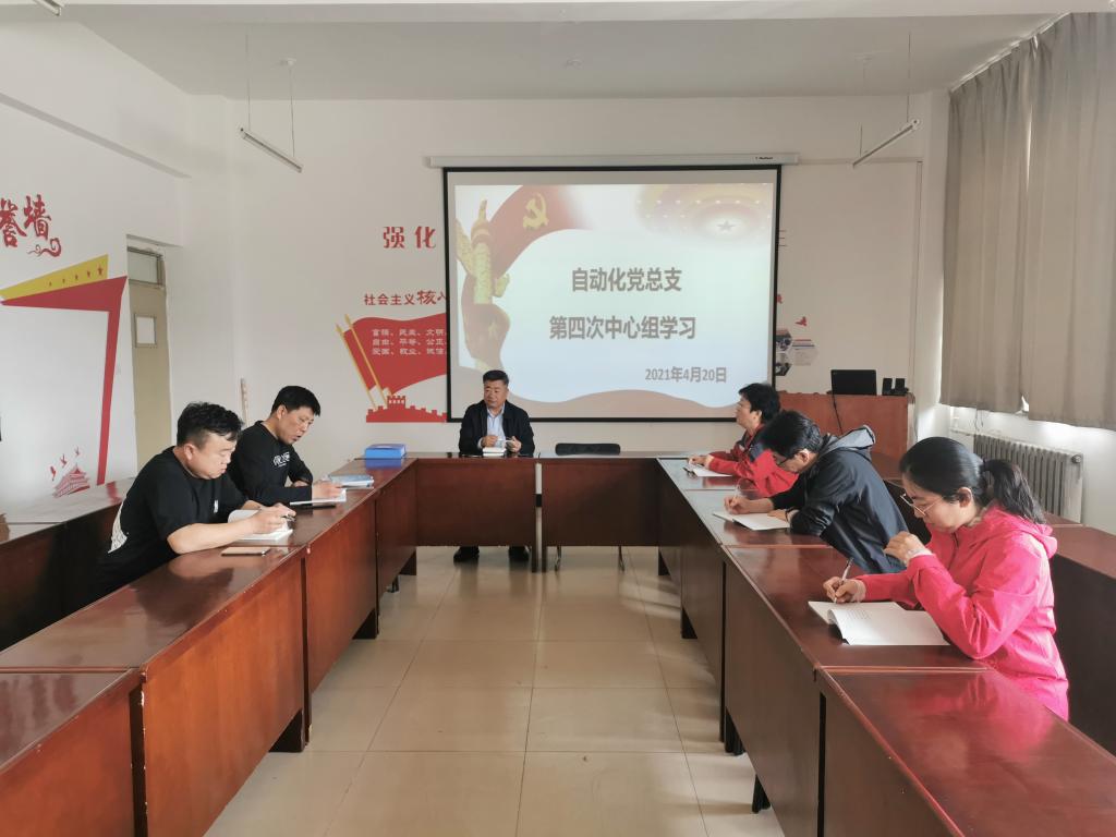 2021年4月20日,自动化系党总支理论学习中心组进行2021年第四次专题学习,中心组成员参加学习,学习会由党总支书记张云龙主持。