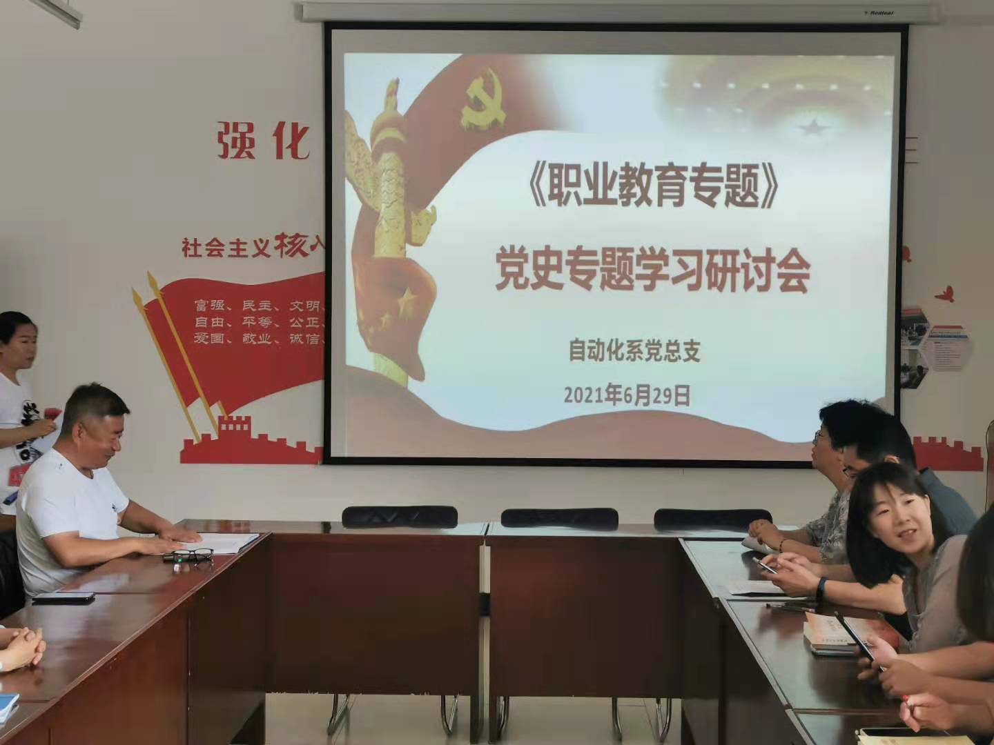 2021年6月29日上午,自动化系党总支在创造楼306会议室召开党史学习教育“教育专题”交流研讨会,研讨会由自动化系党总支党史学习教育领导小组组长、党总支书记张云龙主持,全体教师参加会议。
