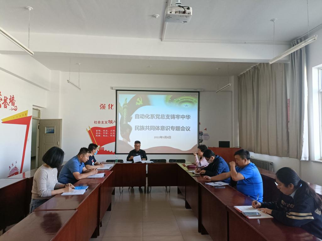 为深入贯彻落实《中共包头轻工职业技术学院委员会第十四个民族政策宣传月活动方案》,5月8日下午,自动化系党总支开展了以“铸牢中华民族共同体意识”为主题的专题学习,张云龙书记主持会议,系部领导班子成员参加会议。